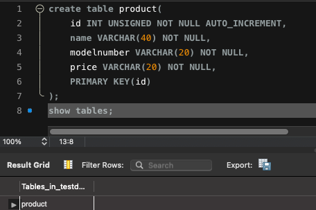 - <컬럼명> + <데이터 타입> 을 기본 골자로 작성한다. (해당 정보만 있어도 등록 가능하다.)